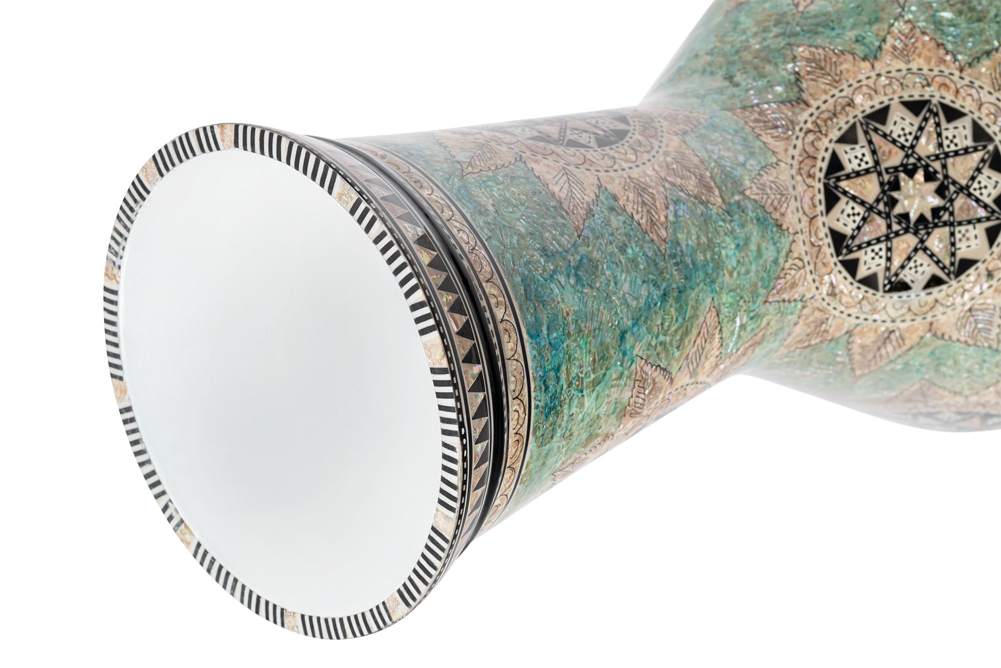 Die MEINL Percussion Artisan Edition Egypt Doumbeks werden in Ägypten gefertigt. Das Finish im authentischen Mosaik-Stil wird mit Hilfe von "Mother of Pearl" Intarsien zum Hingucker. Die Doumbek wird aus Aluminium gegossen und hat einen wunderschönen Ton, den jeder Spieler lieben wird.