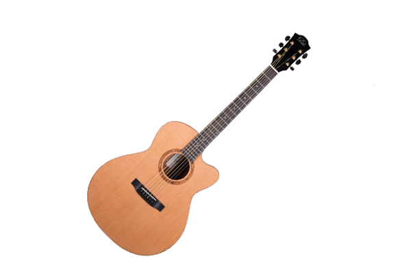 Westerngitarre mit TonabnehmerSpezifikationen:Bauform: Grand Auditorium CutawayDecke: kanadische Zeder massivBoden & Zargen: Mahagoni Hals: Cedro mit 2-Wege HalsstabGriffbrett: EbenholzSteg: EbenholzSattel- & Stegeinlage: KnochenMensur: 650 mmSattelbreite: 45 mmPreamp: L.R. Baggs ElementPickup: Misi Trio VTFinish: Natur mattMechanik: geschlossen verchromt